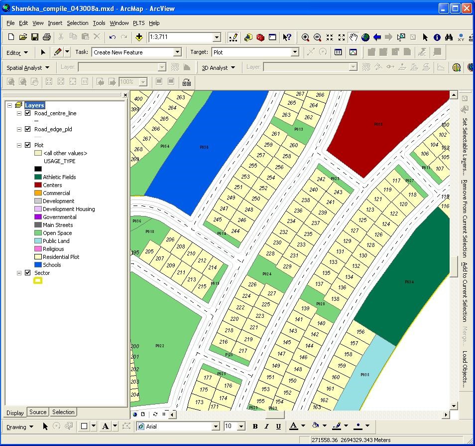 Great Arc integrated the CAD design data into a file geodatabase. Using available tools in Autodesk Map 2008 and ArcMap, Great Arc created and verified polygon topology for the plots and assigned unique names to each plot.